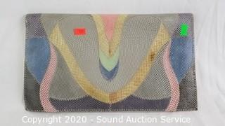 Lot Details: Includes Italian black leather Nudvedive purse, Marcraft leather clutch, Frederick & Nelson clutch, Furst & Mooney leather snakeskin print clutch and Roy H. Bjorkman crocodile print clutch.