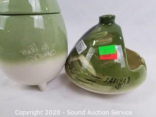 Lot Details: All appear to be signed by artist. Matthew Adams pieces are 2 plates, urn, jar and mug, tile artwork is by artist Jody Bergsma, 6.25" x 8.5".