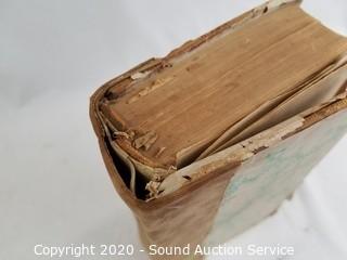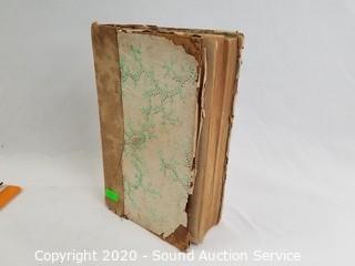 Lot Details: Book has various wear, binding has come free (has been taped), first page is torn, the rest seem to be intact and legible, has some illustrations, cover has been covered in paper, possibly to preserve it.