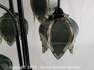 Lot Details: Brass accent and smokey glass shades. 32" H x 17".