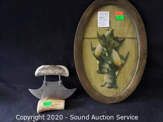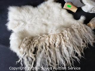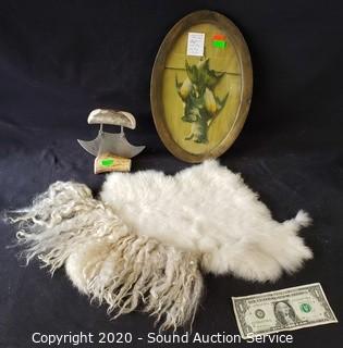Lot #0333: Bone Handle Ulu, Rabbit Pelt, Goat Wool & Artwork