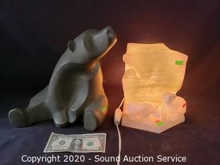 Lot #0308: Carved Quartz Bear Lamp & Ceramic Bear Sculpture