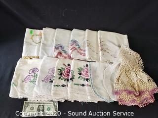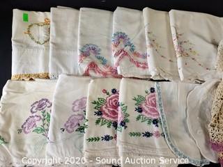 Lot #0311: Embroidered Pillowcases & Crocheted Doilies
