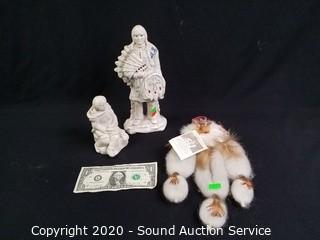 Lot #0072: Handcrafted Native Mandala & 2 Native Figures