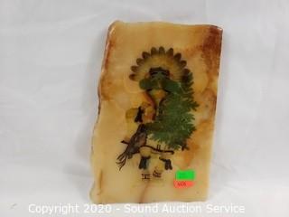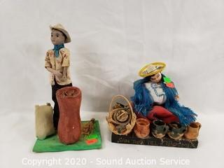Lot Details: Includes signed quartz tablet (refer to photos for signature), figure console bowl, iguana vase, pottery vase and jug, pottery salesman and other figures. Console bowl is 4.5" x 11".