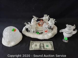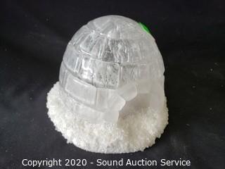 Lot Details: Igloo lights up blue, made from an acrylic material. Largest bear is 6" tall.