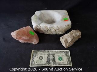 Lot Details: Ash tray is 2" x 7.5" x 5.5", stone chunks are 4" x 2" and 4" x 3".