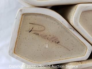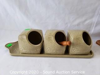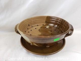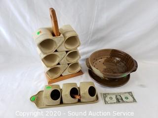 Lot #0322: Signed Art Pottery Mugs, Colander & Condiment Set