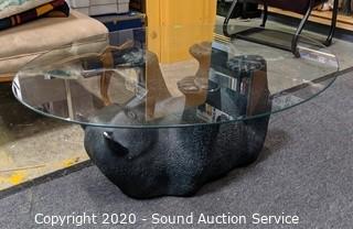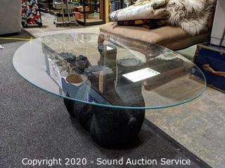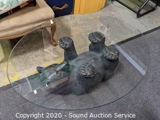 Lot #0184: Unique Bear Base Glass Top Coffee Table