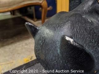 Lot Details: Has a plaster black bear base, some chips. 3/8" thick glass oval top, 16" x 31.5" x 42".