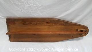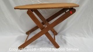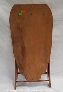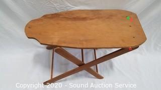 Lot Details: Includes fold down ironing board (40" x 12"), child's wooden ironing board (24" x 11" x 25"), Nassau iron and service tray stand (has some wear to the finish).