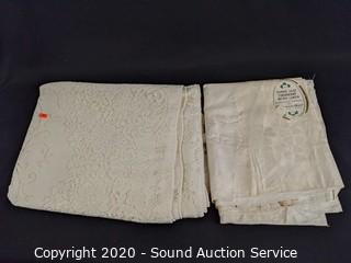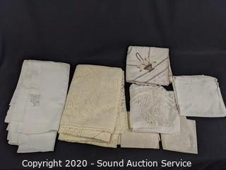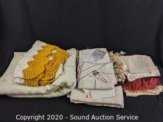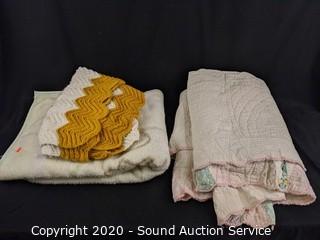 Lot #0022: vtg. Linens; Quilts, Afghan, Doilies, Tablecloths
