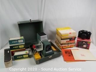 Lot #0176: Vtg. Slide Projector w/Slides, Reels & Camera
