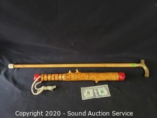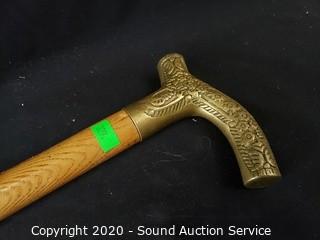 Lot Details: Cane has a carved brass handle, 32" and 19.5" long.