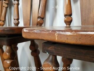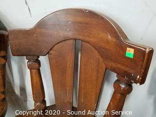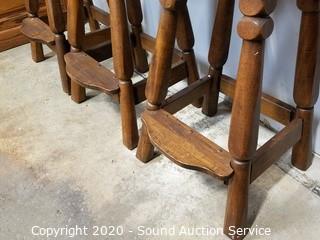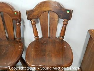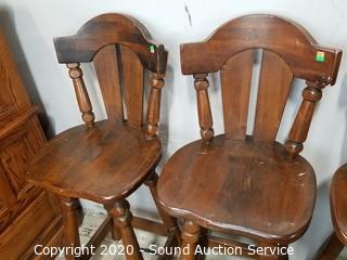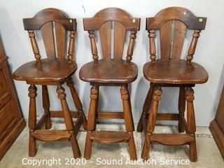 Lot #0147: 3 Solid Wood Counter Height Swivel Chairs