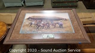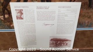 Lot Details: Titled "Trading Post at Chadron Creek", limited #143/1000, pencil signed and numbered by artist. Has artist/art information and CoA on the back. Dated 1995. 41" x 30.25".