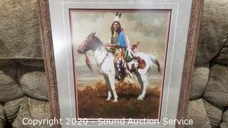 Lot Details: Signed by artist. Image of a Native American man riding a horse. Dated 1992. 30.5" x 25"