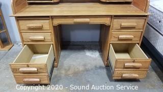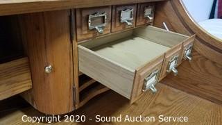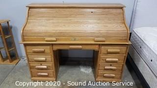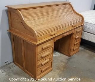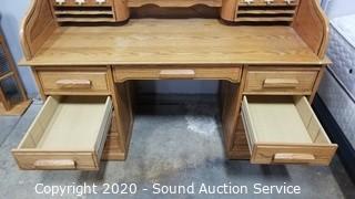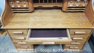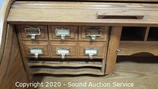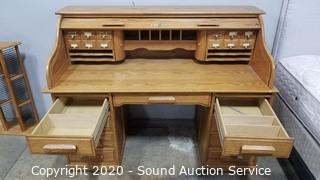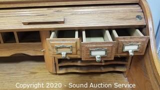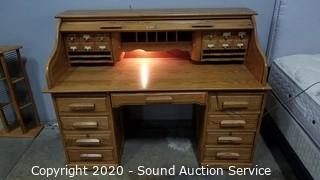 Lot #0009: Oak Lighted Roll Top Desk