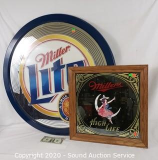 Lot #0150: Pair of Miller Mirrored Beer Signs