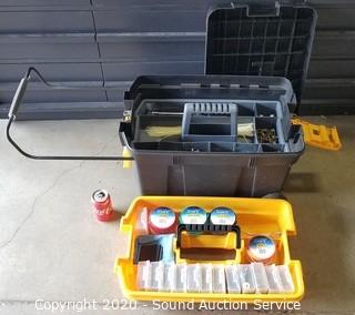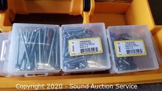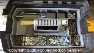 Lot Details: 2 removable trays, telescopic handle, 16.5" x 23" x 14". Includes various nails, screws, washers, nuts, bolts and more.