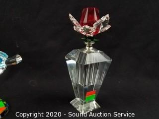Lot #0325: 3pc Crystal Sculptures & Perfume Bottle