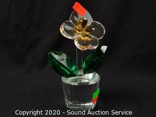 Lot Details: Shannon Crystal Flower, 6" H x 4.5", Shannon Crystal Rose Perfume Bottle, 6.5" H x 2.5" W. Crystal Bird Bath, 4.5" x 5".