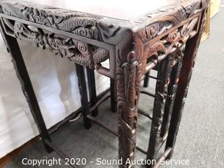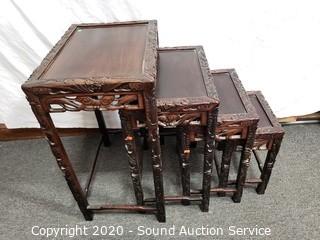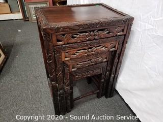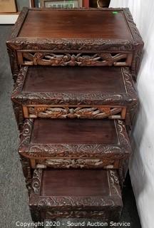 Lot #0276: Beautifully Carved Dragon 4pc Asian Nesting Tables