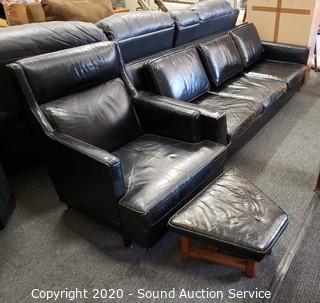 Lot #0282: Dunbar Faux Leather Sofa & Chair Set