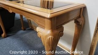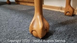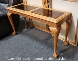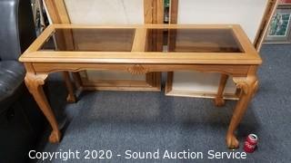 Lot #0005c: Oak Claw & Ball Foot Glass Top Sofa Table