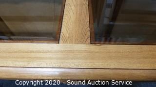 Lot Details: Matches the sofa & loveseat & 3pc table set. Beveled smokey glass top, solid wood construction. In excellent condition. 28" H x 18" x 49".