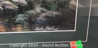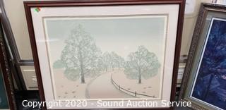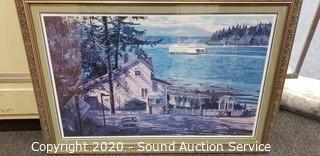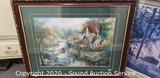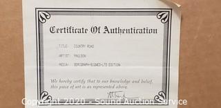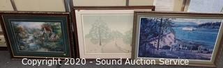 Lot Details: Litho is signed John Paulson #199/375 Titled: "Country Road" with COA, 28" x 34". Nicky Bachnel? Thomas Kinkade style print, 25" x 31". And Ferry Harbor scene print, refer to photos for artist signature, 26.5" x 39".