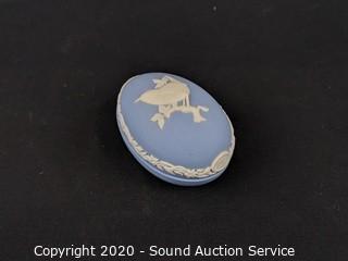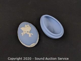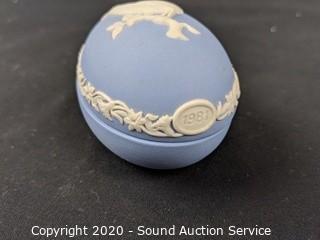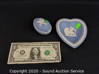 Lot #0062: Wedgwood Blue Jasperware Egg & Heart Dishes