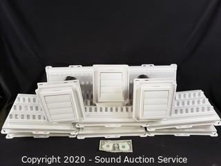 Lot Details: 3 are 4" exhaust vents, 8 are sliding lever vents 11" x 7". All are white finish, like new, do not appear to have ever been installed.
