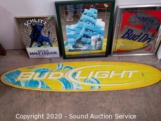 Lot #0021: 3 Mirrored Beer Signs & Bud Light Wood Sign