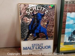 Lot Details: Wood sign is 58" x 11.5". Includes Schlitz Stout Malt Liquor 18" x 12", Beck's 23.5" x 17" and Bud Dry 21" x 16".