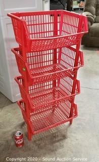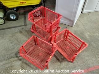 Lot #0164: 4pc Red Plastic Stackable Utility Shelf