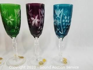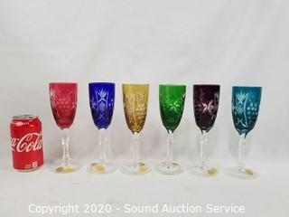 Lot #0317: 6pc Bavarian Color Cut-to-Clear Crystal Stemware