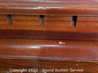 Lot Details: Some wear to the finish (dings, scuffs, scrapes), overall good condition. Label has been torn off. 31.25" x 30" x 18".