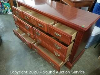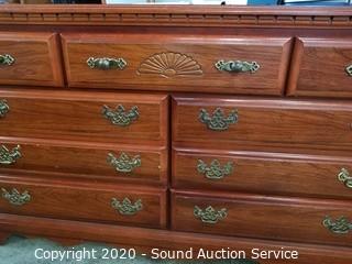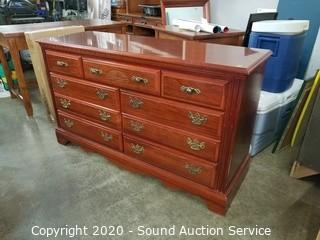 Lot #0006: Broyhill Cherry Finish 7-Drawer Lowboy Dresser