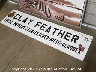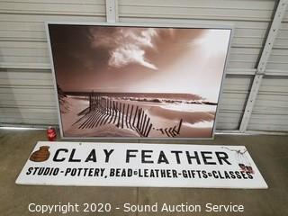 Lot #0017: Large Clay Feather Wood Sign & Ikea Shore Artwork