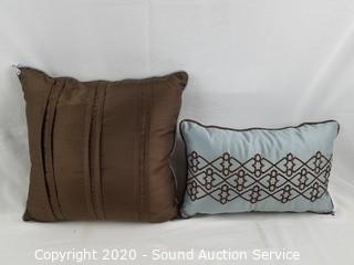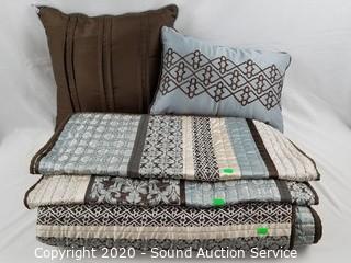 Lot Details: Includes 86" x 92" comforter, 2 decorative pillows (14" x 14" and 15.5" x 9") and 2 standard shams. Appears to be in excellent condition.