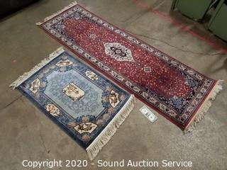Lot #0323: Pair of Hand Woven Wool & Silk? Rugs