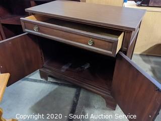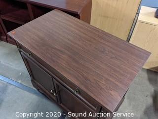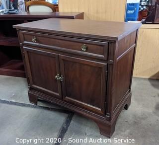Lot Details: Laminate top, some wear to the finish. Single drawer and lower cabinet. 31.5" x 36" x 20".