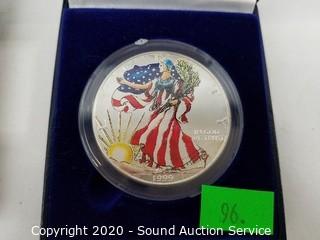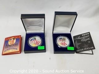 Lot #0096: 2 Painted American Eagle 1oz .999 Silver Dollars