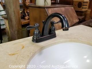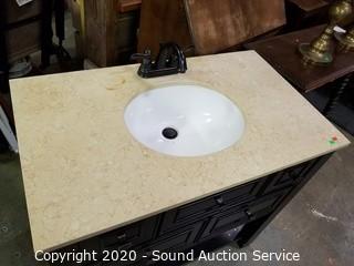 Lot #0371: Nice Travertine Top Bathroom Vanity Sink