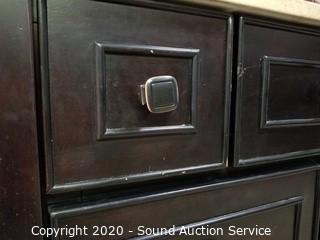 Lot Details: Bronze finish faucet. In good condition. 4 drawers. 34" H x 36" W x 21" D.