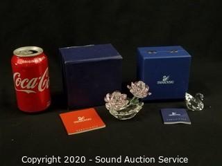 Lot #0149: Swarovski Crystal Swan & Flower Sculptures