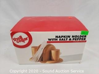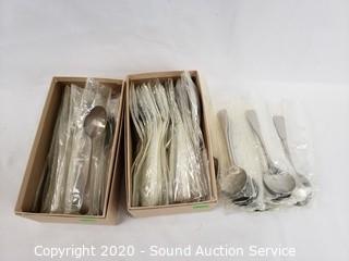 Lot Details: Includes napkin holder with salt and pepper, Cuisinart electric knife, various Oneida stainless spoons (all appear to be new) and BBQ set.