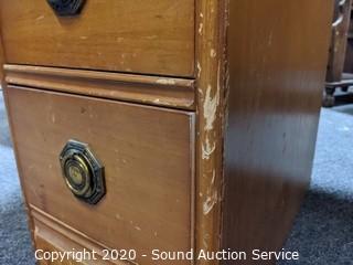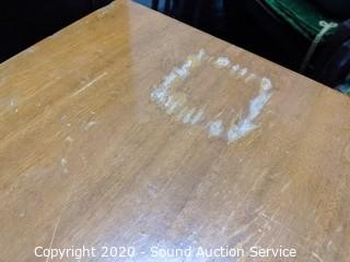 Lot Details: Beaded edge, some wear to the finish, wear spot stain on the top. Looks like teak or maybe camphor wood finish. 29.5" H x 46" W x 20" D.