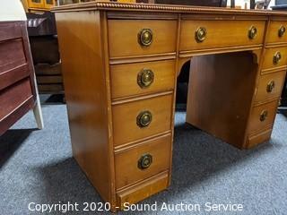 Lot #0046: Vtg. 9-Drawer Mahogany Desk